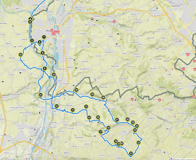 het zal een hele mooie rit worden ...... met tal van beklimmingen ... Wolderberg en vervolgens mont St Pierre ...; Les Trixes in Visé en vervolgens naar Bombaye en warsage ...; Fort D'aubin ... St jean sart en Valdieu ....naar Clermont , Birven en de beruchte La Clousse ... om vervolgens via de Voer terug te keren .... ongeveer 100 km